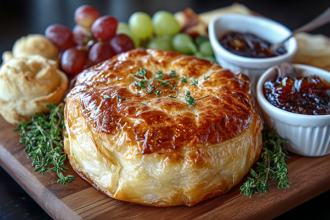 Discover Baked Brie in Puffed Pastry with Honey, Fig, and Prosciutto, a savory pastry perfect for entertaining. Delight your guests with this easy recipe today.