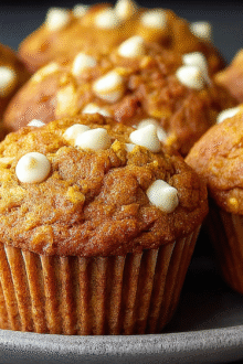 Enjoy these moist pumpkin white chocolate chip muffins, perfect for cozy mornings.…