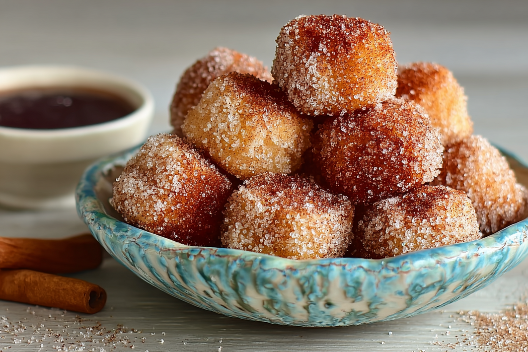 Easy baked churro bites are bite-sized snacks made from crescent roll dough coated in cinnamon sugar and baked to a golden crisp. They’re a quick, healthier alternative to fried churros.