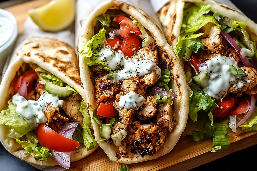 - Vegan: Use grilled chickpeas or tofu strips instead of chicken. Replace tzatziki with dairy-free cucumber dip.