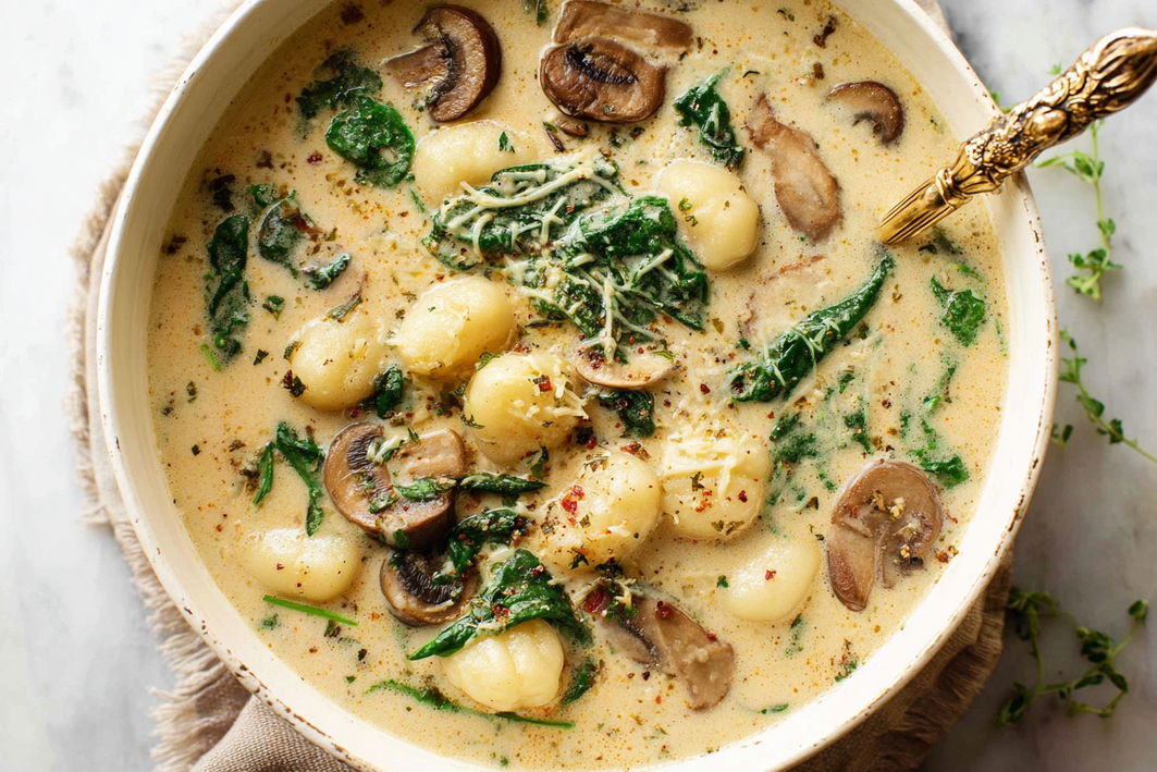 Parmesan, Mushroom, and Spinach Gnocchi Soup